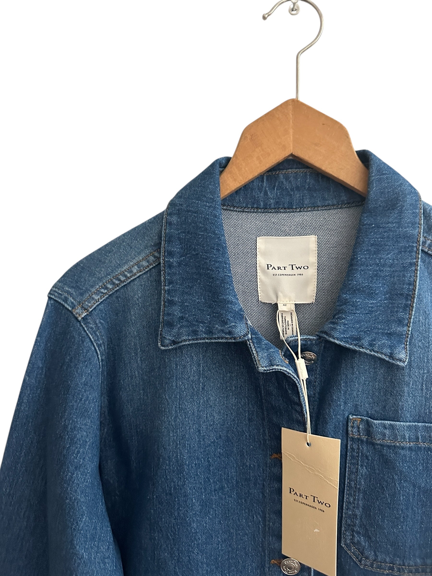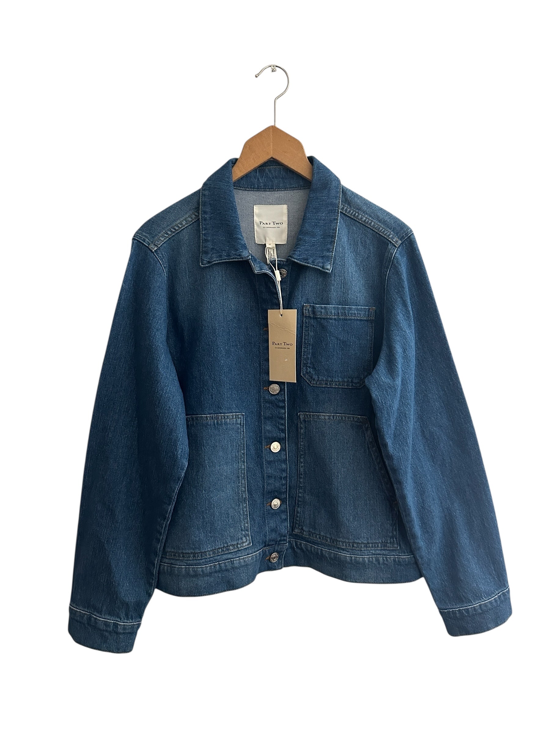 Omschrijving: Klassieke denim jas met comfortabele pasvorm, knoopsluiting en praktische zakken