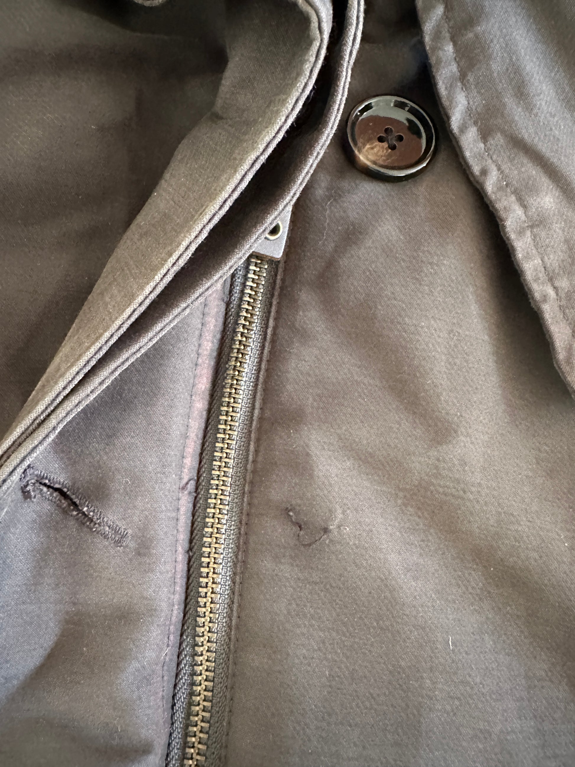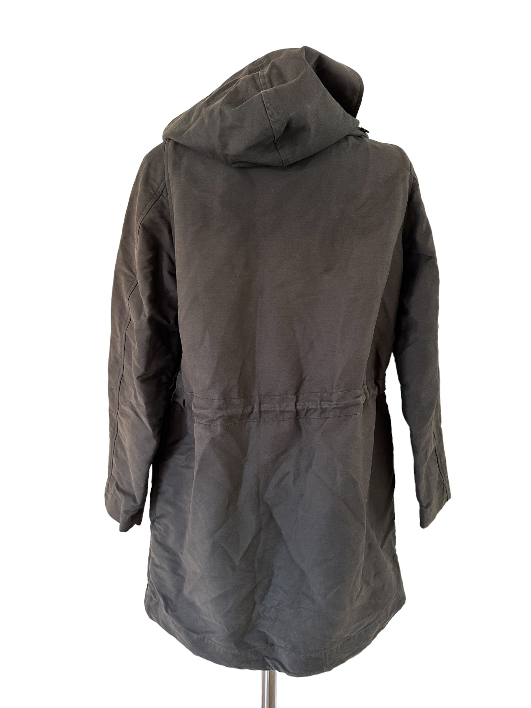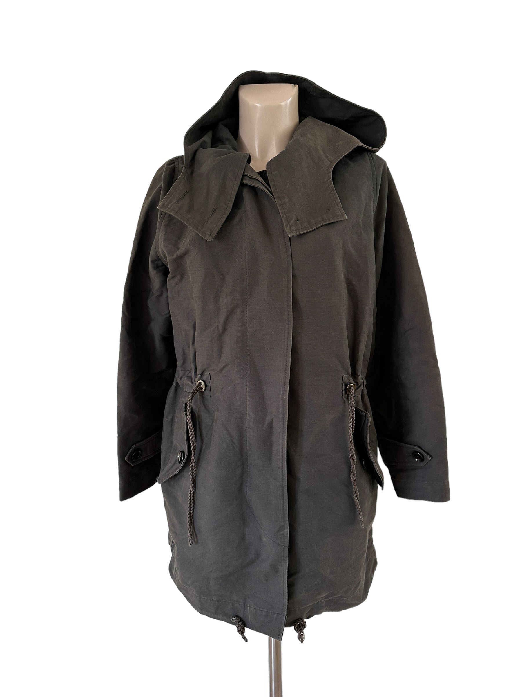 Een Sessùn winterjas in khaki (maat L) heeft een tijdloze en functionele uitstraling. Het iets gebruikte model straalt karakter uit en biedt warmte en comfort, perfect voor koude dagen met een stijlvolle, casual look.