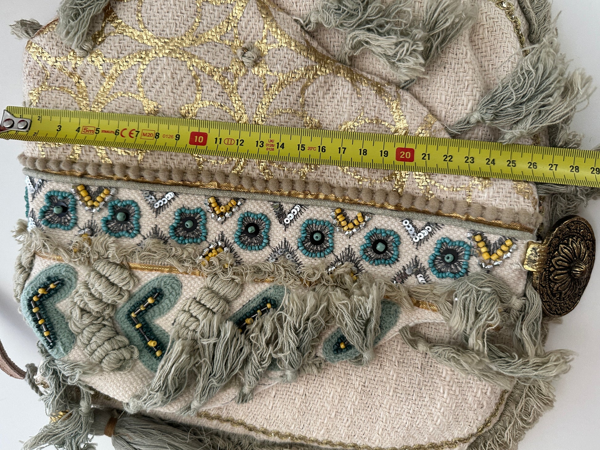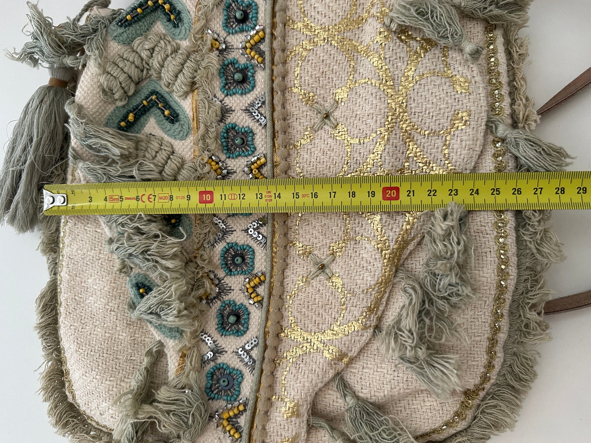 Materiaal: Textiel met borduursels, kralen, franjes en decoraties