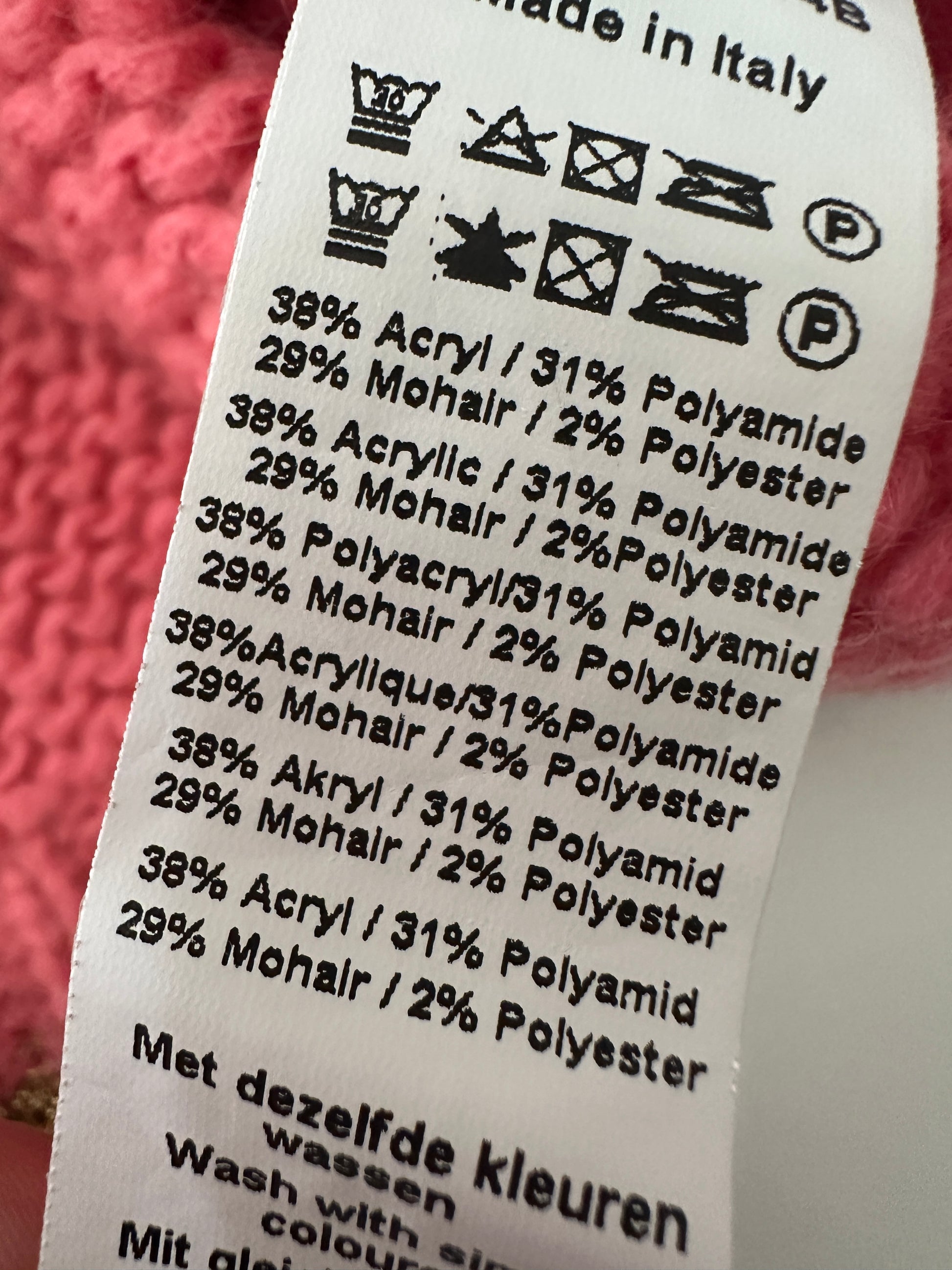 Materiaal: Acryl, polyamide, mohair, polyester