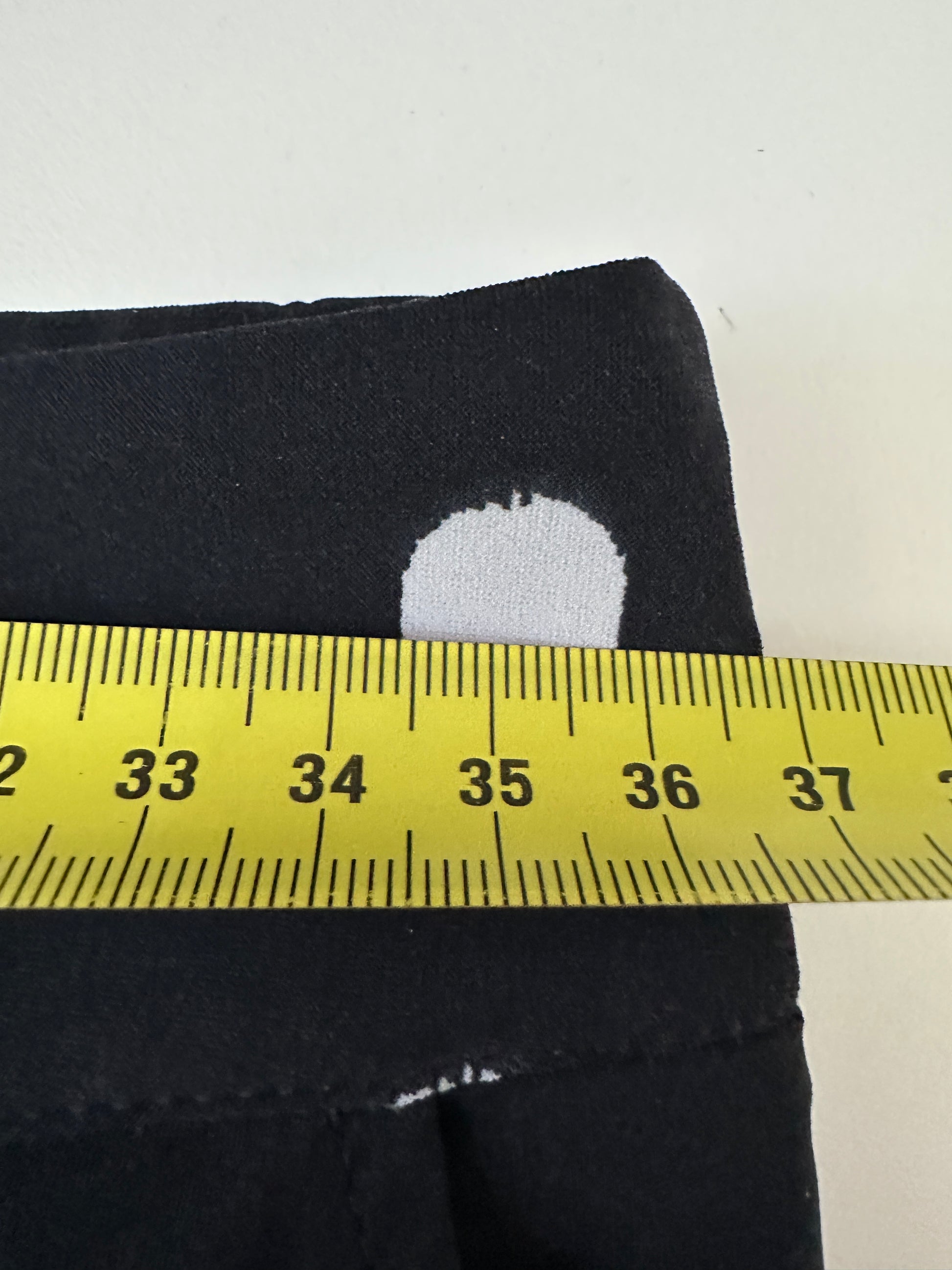 Afmetingen: Breedte, binnenbeenlengte en totale lengte staat in de foto.